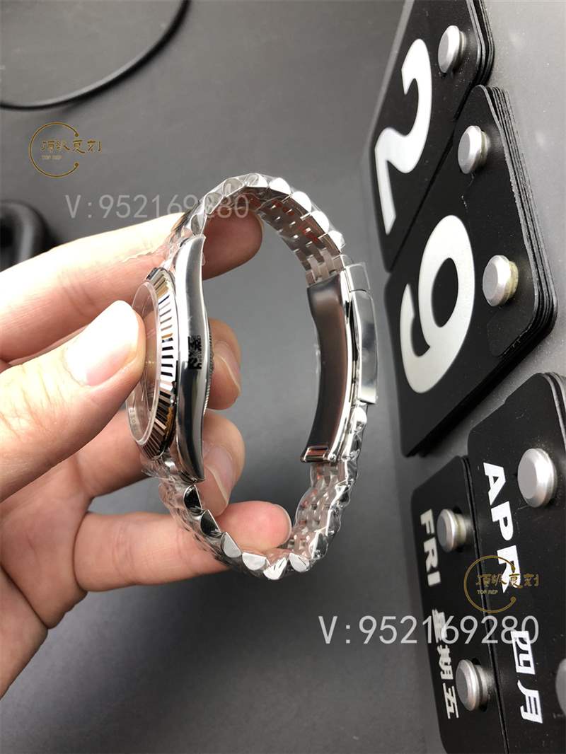 c廠的勞力士日志綠蘿41mm*12mm。表殼采用的904精鋼跟原裝一樣的鋼質。在這里宏杰要說一下這是真正的904鋼,表殼打磨之后非常的亮,狗牙圈的牙口細膩(原裝是采用的18K鉑金,C廠采用的是電鍍的18K白金,視覺上面是跟原裝一樣亮)摸起來非常順滑,不倒手。鏡面是采用真藍寶石水晶玻璃,增加了手表的透明度,同時它還經過防眩光技術處理,讀取手表數據非常方便,硬度高,不易劃傷,3點鐘位置設有雙層日歷視窗,閱讀日歷也很容易,當然對于這個灰色的表面。看起來非常漂亮,是一款非常有魅力的手表,復刻表盤面的灰色設計在陽光下非常漂亮,放射狀的圖案層次感特別強,很細膩,顏色變化非常豐富。