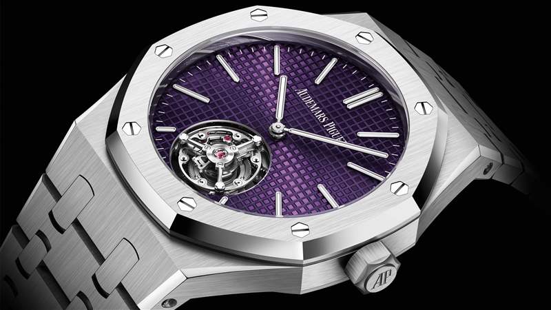 作為愛彼慶祝皇家橡樹 50 歲生日的一部分,最近宣布,這是新的皇家橡樹自動上鏈飛行陀飛輪超薄 RD#3,它有一個非常紫色的表盤。雖然這遠不是??該品牌第一次為皇家橡樹配備紫色表盤,但表盤并不是 RD#3 平臺的唯一變化。
