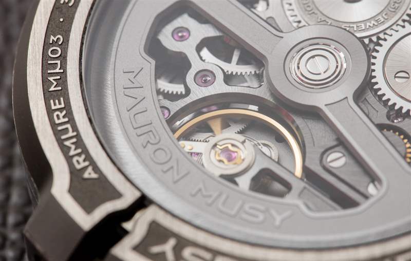 Armure MU03 手表內(nèi)??部是一個非常好看的“制造”自動機芯。此機芯并非由 Mauron Musy 自己生產(chǎn),而是由當?shù)厝鹗抗虨樵撈放粕a(chǎn)的原創(chuàng)機芯。該機芯以 4 赫茲的頻率運行,具有 55 小時的動力儲備,并提供帶有輔助秒針、日期的時間,當然,它是自動的。有趣的細節(jié)包括雙向上鏈系統(tǒng)(不常見)以及迷人的結(jié)構(gòu)和機芯的精加工,它們在匹配 Armure MU03 手表本身的整體美感和主題方面做得很好。甚至像日期盤這樣的元素也是定制的。手表的這種“定制”水平是對有助于解釋價格點的細節(jié)的關(guān)注,作為 10 美元手表的消費者,