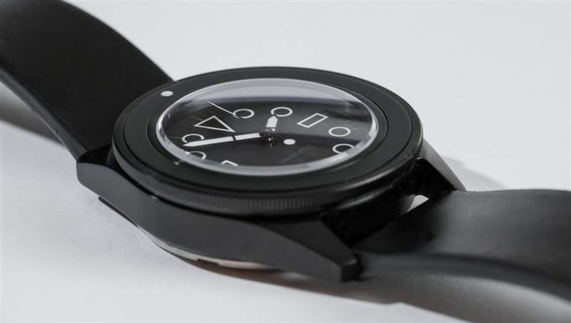 Unimatic U1-EMN 從該品牌當前的主要表殼設計開始,該表殼設計是原創的,但顯然受到了許多之前的手表的啟發。鋼制尺寸為 40 毫米寬,防水深度為 300 米。表殼上的柔軟邊緣和啞光黑色 DLC 涂層使其既現代又簡約。像表冠這樣的部件對于 Unimatic 來說是獨一無二的,它們進一步發揮了美學和功能性,增加了一個簡單的圓點旋轉表圈。在專業潛水表(U1-EMN 核心主題所基于)上極為罕見,單點表圈在一些老式飛行員手表上更常見。它在這里做什么?它只是看起來很酷——有時這還不夠嗎?