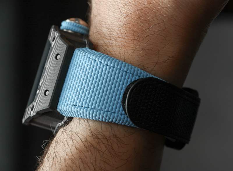 從手腕上欣賞手表也不難。Richard Mille 再次使用 TPT 碳作為表殼材料,這是一種層狀的碳,經(jīng)久耐用且非常好看。RM53-01 表殼寬 44.5 毫米,高 49.94 毫米(凸耳到凸耳)和 16.15 毫米厚(防水深度達 50m)。復雜的表殼設計與有趣的表帶系統(tǒng)(具有有效但具有諷刺意味的非豪華 Velcro 閉合系統(tǒng))相結合,使框架能夠展示對稱和視覺上引人入勝的內部運動。