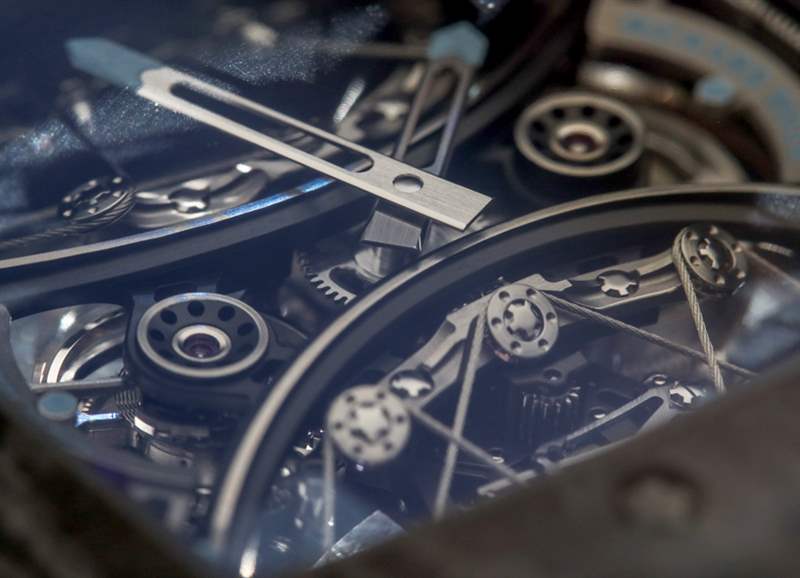 第一種方法是結合他們的運動懸掛電纜系統(tǒng)的一個版本。早期的網(wǎng)球運動員拉斐爾·納達爾(Rafael Nadal)在理查德·米勒(Richard Mille)手表中引入了機芯懸掛系統(tǒng),該系統(tǒng)在 10 個滑輪上使用一系列兩條細小的金屬電纜,并由四個“懸掛器”緊緊固定,以懸掛大部分以鈦金屬為基礎的手動上鏈陀飛輪機芯。因此,電纜可以吸收手表在被撞到時可能遭受的大量震動。電纜系統(tǒng)吸收了大量危險的振動,而不是物理沖擊進入運動并可能破壞它。看到這些微小的電纜有多酷,這本身就是另一種樂趣。