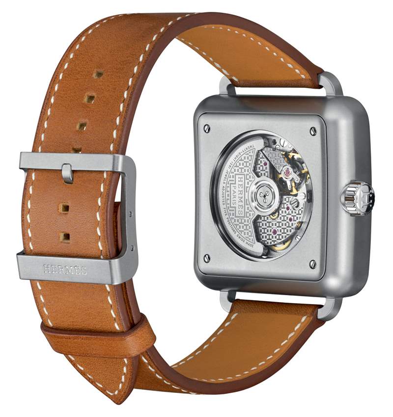 運動也是新的。手表內(nèi)部是 Hermès 口徑 H1912 自動機芯——由 Vaucher 為該品牌生產(chǎn),Hermès 也擁有該機芯。透過藍寶石水晶底蓋窗可以看到機芯,它以 4Hz 的頻率運作,并提供 50 小時的動力儲存。對于這款手表,它僅提供帶小時、分鐘和中央秒針的時間。