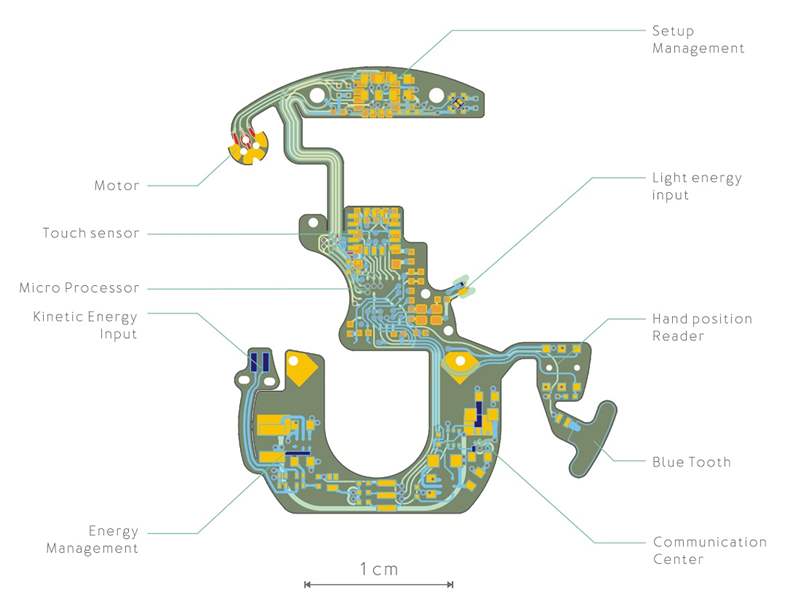 在處于靜止?fàn)顟B(tài)后輕敲兩下手表的水晶,可以喚醒 e-Crown 系統(tǒng)。即使在睡眠模式下,系統(tǒng)也會(huì)保持正確的時(shí)間,然后使用其機(jī)械系統(tǒng)繼續(xù)在 ROCS 模塊中設(shè)置正確的時(shí)間。之后,ROCS 模塊由位于模塊堆棧最低層的手表內(nèi)部的機(jī)械自動(dòng)機(jī)芯提供動(dòng)力。使用 e-Crown 是完全可選的,如果用戶愿意,他們可以簡(jiǎn)單地手動(dòng)設(shè)置時(shí)間并假裝手表完全是傳統(tǒng)的。