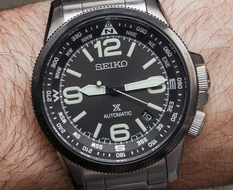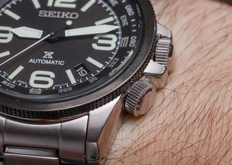 4點(diǎn)鐘位置的獨(dú)立表冠用于控制內(nèi)部旋轉(zhuǎn)導(dǎo)航表圈。它可以在沒有任何點(diǎn)擊的情況下自由移動(dòng),這對于導(dǎo)航邊框很常見。精工在使轉(zhuǎn)動(dòng)感覺盡可能高端方面做得很好,盡管在幾千美元范圍內(nèi)的手表上的旋轉(zhuǎn)動(dòng)作通常更好。為了錢,內(nèi)部旋轉(zhuǎn)表圈工作得非常好,具有良好的阻力水平,不像過去那些蹩腳的,幾乎完全自由轉(zhuǎn)動(dòng)的內(nèi)部表圈。很可能有百分之一(或更少)的 Prospex Land 手表用戶實(shí)際上會(huì)使用內(nèi)部旋轉(zhuǎn)表圈來處理除手指玩具以外的任何東西來釋放閑置的張力。
