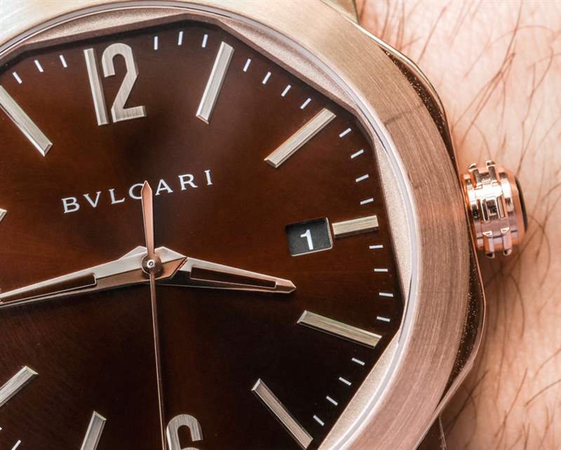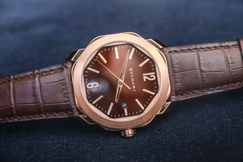 寶格麗還利用 Octo Roma 系列推出了全新的棕色表盤顏色。與他們提供的藍色相似,棕色表盤是內部生產的(請參閱此處寶格麗如何在此處制作手表表盤)并使用類似于車身面板涂漆方式的仔細多層漆漆技術完成,但更微型和謹慎的態度。Bulgari Octo Roma 手表上的溫暖金屬棕色表盤采用鋼制表殼,與 18k 玫瑰金表殼相得益彰。