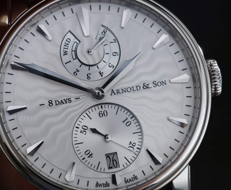 表盤上的易讀性和性感性很高,在我看來,這些表盤恰到好處地融合了優雅和精致,并且有吸引注意力的趨勢。堅固而傳統的指針增添了陽剛之氣,Arnold & Son 甚至能夠在組合中插入日期指示器窗口(在輔助秒盤中)。