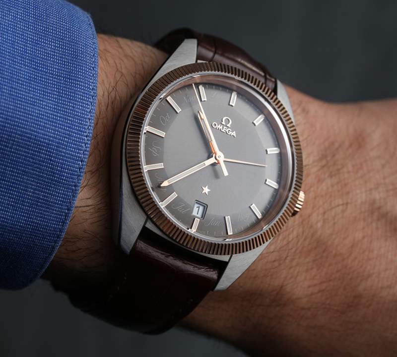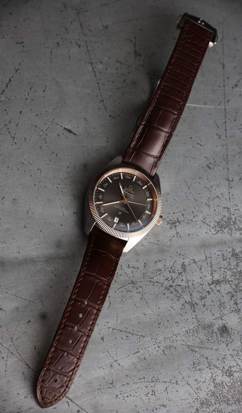 大約一年前,我們在這里推出了標準的歐米茄環球霸王系列。這款 39 毫米寬的手表以多種材料首次亮相,包括鋼、18k 黃金、18k Sedna(玫瑰)金和鉑金,以及神秘的口號“世界首款至臻天文臺表”。廣告留言廣告信息結束