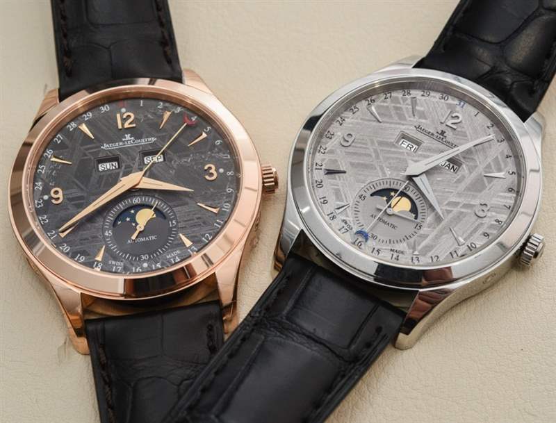 積家 ( Jaeger-LeCoultre?) 2015 年最性感的新款手表之一根本不是真正的新手表,而是積家 (Jaeger-LeCoultre) 大師日歷,有兩個(gè)隕石表盤選項(xiàng),有 18k 玫瑰金(參考號(hào) 1552540)或鋼(參考號(hào)) . 1558421) 例。沒(méi)錯(cuò),您無(wú)需支付貴金屬溢價(jià),就可以擁有隕石表盤和精鋼表殼的積家經(jīng)典“三重日歷月相”風(fēng)格表盤。那么,讓我們一起來(lái)看看這兩款極具吸引力的“太空”面孔大師系列腕表吧。