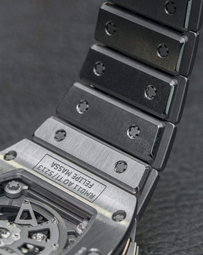 在理查德米勒手表的背景下,RM 011 系列無需過多介紹。Richard Mille RM 011 “Felipe Massa” 系列最初于幾年前發布,可以說是該品牌最初的“突破表款”,幫助這個超高端運動手表品牌在奢侈手表界取得了目前的地位。2015 年,Richard Mille 為該品牌添加了一些可以說是基本但特別的東西——Richard Mille RM 011 的第一個表鏈選項也是 Richard Mille 男士手表的第一個表鏈。