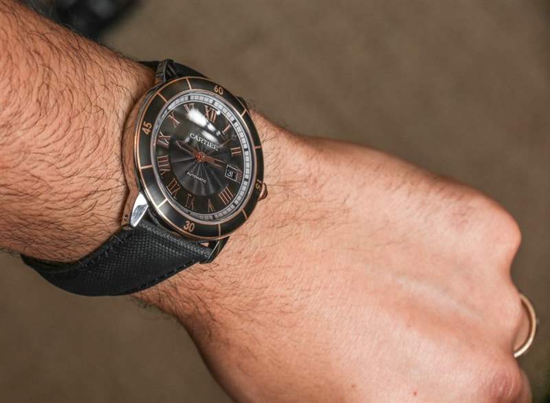 當然,卡地亞 Ronde Croisiere 不是潛水表。卡地亞 ( Cartier) 已經擁有其中一款Calibre Diver(此處為 aBlogtoWatch 評論),這是該品牌產品系列中目前我最喜歡的運動手表。但卡地亞 Ronde Croisiere 也不是一款正裝表。我會稱之為優雅的休閑運動手表。為此,該表殼防水深度達 100 米,并配有漂亮的黑色小牛皮表帶,具有帆布的視覺外觀。