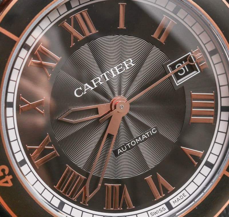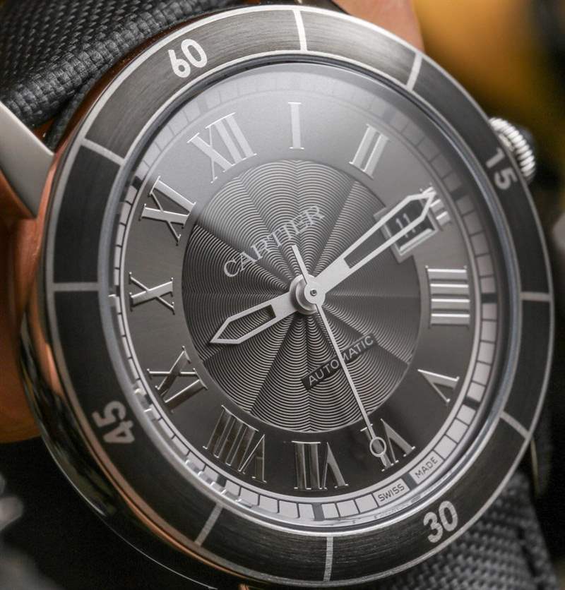 從簡單的設計角度來看,卡地亞 Ronde Croisiere 表盤很可愛。外面有一個傳統風格的分鐘軌道,后面是一圈卡地亞羅馬數字,里面有一些紋理。一切都很合適,比例也很好,但當然,易讀性存在問題。在灰色表盤款式上,羅馬數字的拋光過度,折射光線,影響易讀性。從某種意義上說,它們有助于突出卡地亞 Ronde Croisiere 型號的銀色表盤,因為它具有更好的對比度和更少的光反射率,因此效果更好。