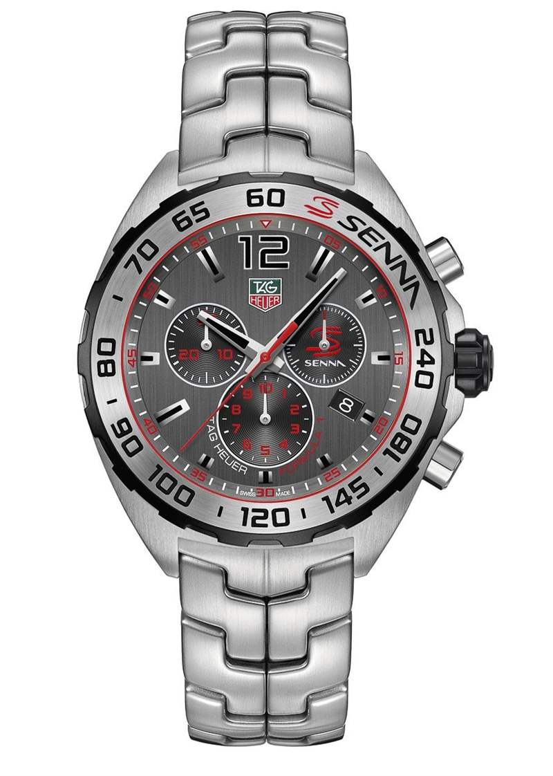 Senna“S”是您在四款全新泰格豪雅艾爾頓塞納版腕表的每一款上都能找到的東西,其中包括兩款 Formula 1 版本和兩款 Carrera 版本。前者是非常簡單的 Formula 1 型號,在 43 毫米寬的鋼制表殼中配備經過修改的彩色表盤。CAZ1012.BA0883 具有帶紅色點綴的無煙煤灰色表盤,CAZ1013.BA0883 具有帶黃色點綴的黑色表盤(巴西主題)。每款 TAG Heuer Formula 1 Chronograph Senna Edition 腕表均搭載瑞士 ETA 石英機芯。
