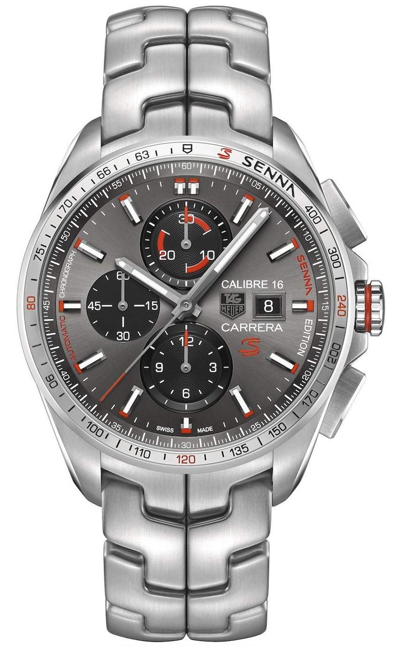 TAG Heuer Carrera Senna Edition 的表盤融合了新款 Carrera 表款的元素,而 44 毫米寬的表殼似乎融合了 Carrera 和 link 元素。Link 型號以其拉絲表殼和表鏈而聞名——這就是您在這里看到的——這與大多數 Carrera 型號截然不同。正如我所說,TAG Heuer Carrera Senna Edition 腕表是這兩個型號系列之間的“混合”手表。鋼款與灰色和紅色的 TAG Heuer Formula 1 Senna 具有相同的表盤調色板,雖然尚未公布,但我感覺鈦版將采用黑色和黃色表盤主題。
