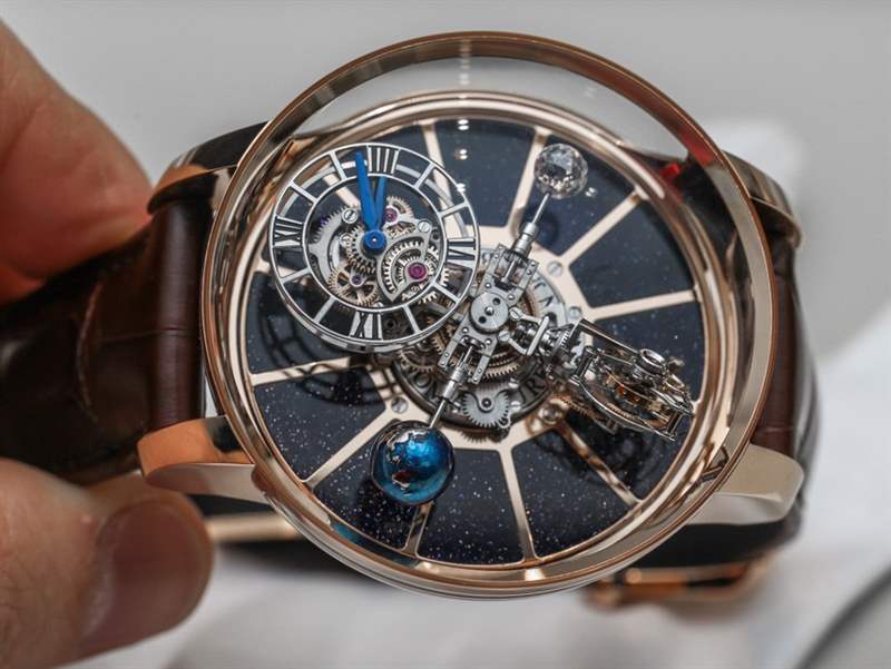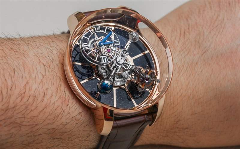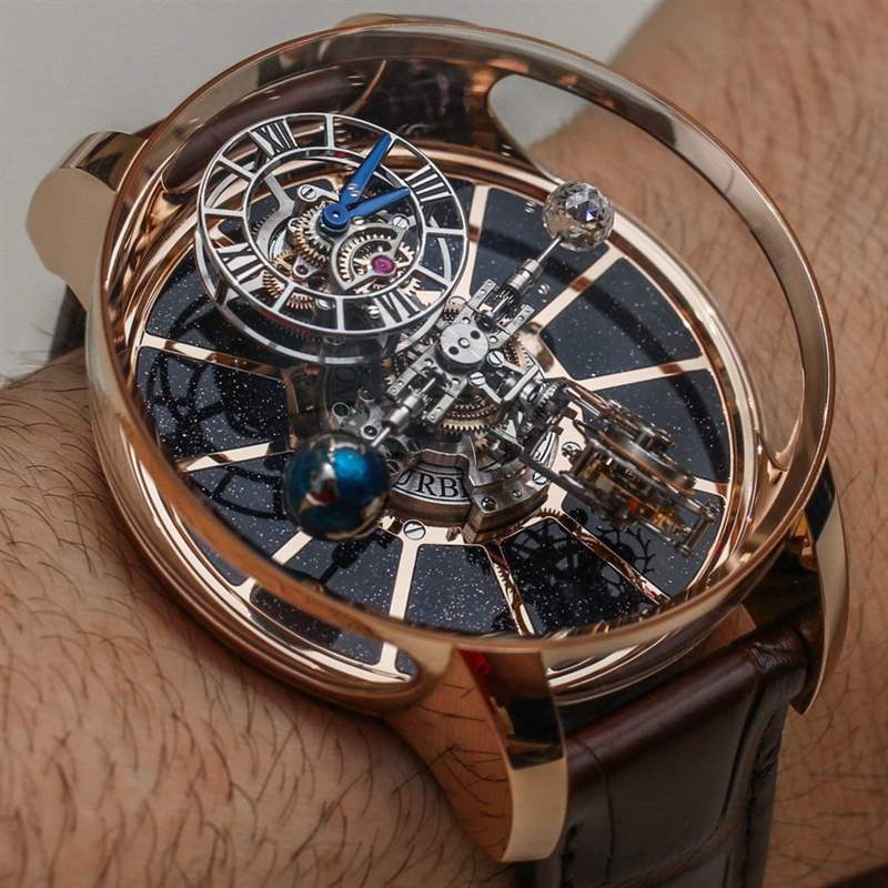 所有這些旋轉和移動的意義何在?當然是充當“催眠編舞”;這一切都與視覺上的輝煌有關(并且有效)。所以就像我說的,如果你對 Jacob & Co. Astronomia Tourbillon 想得太多,你會一直問“為什么?” 這不是為什么,僅僅是因為它很酷而且他們可以。當您成為 Jacob & Co. 的客戶時,您不想聽到有關運轉中的天文館和數學方程式的信息——您想要眼花繚亂、獲得娛樂并提醒您自己很特別。佩戴 Jacob & Co. Astronomia Tourbillon 的任何人都是“特別的”。