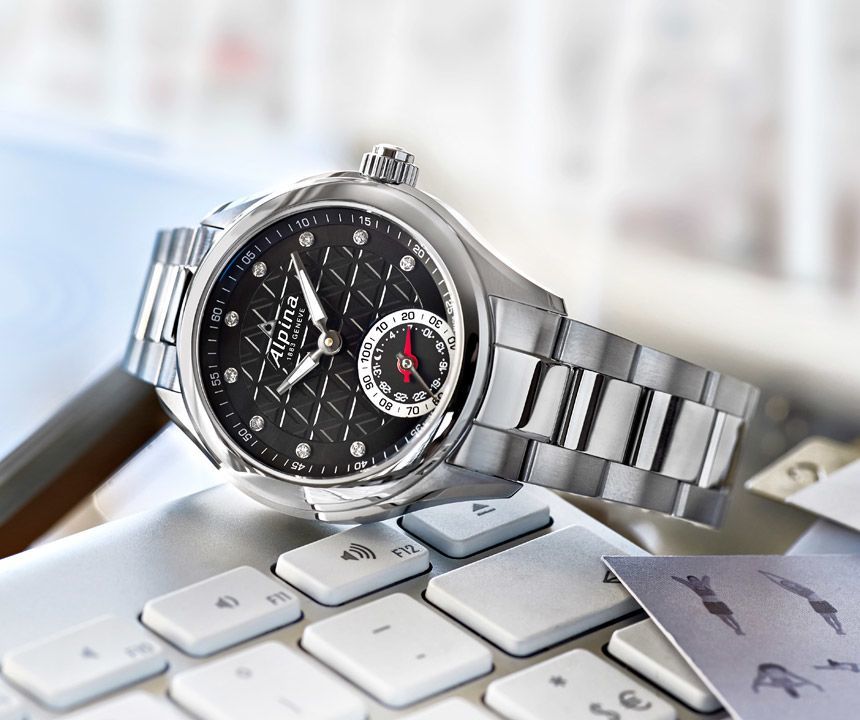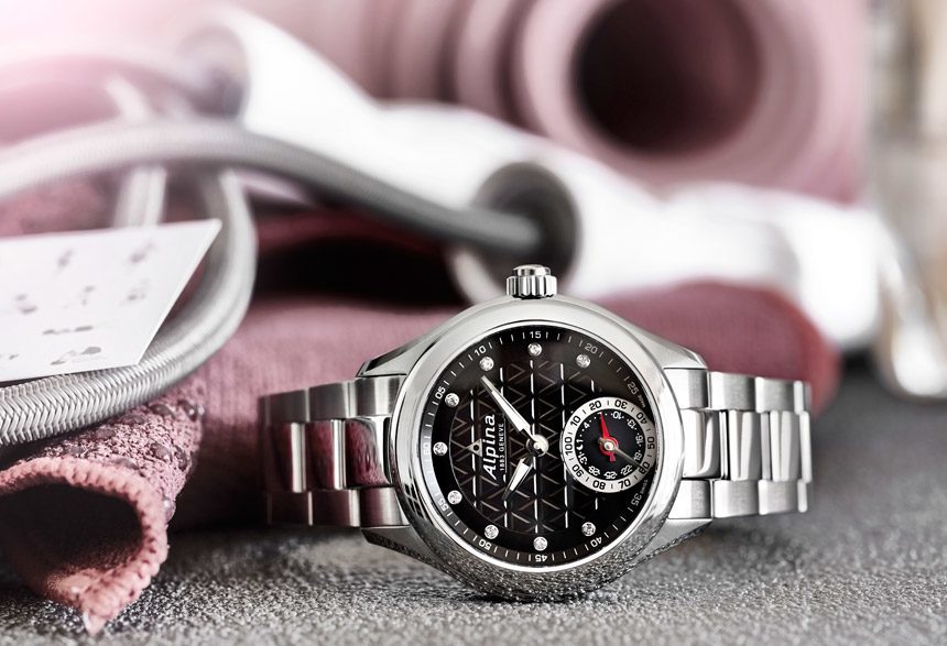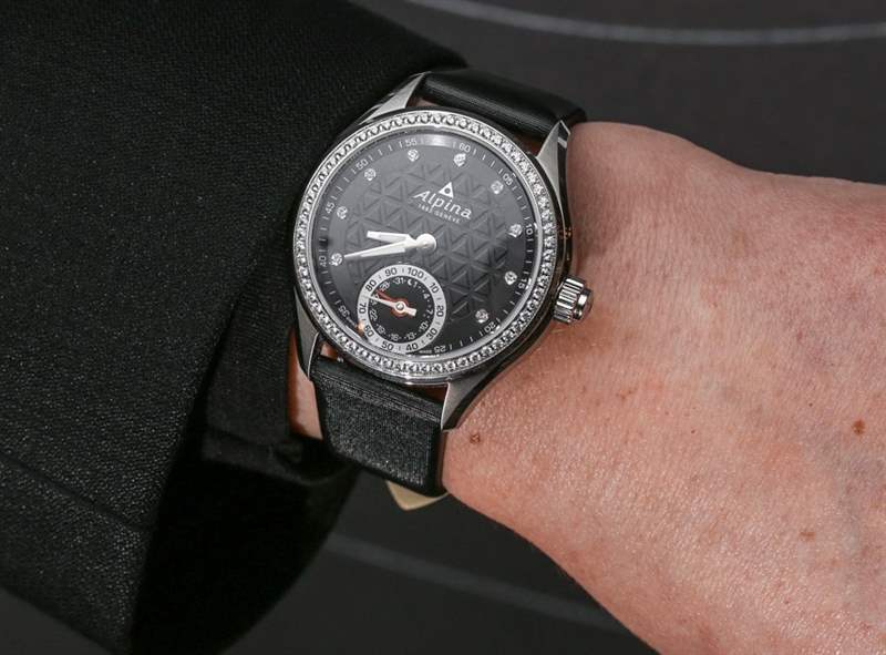 Alpina首發(fā)的Swiss Horological Smartwatch系列其實(shí)有兩個(gè)變種:一個(gè)是女表,Alpina Reference AL-285BTD3C6B,這是一款39mm寬的精鋼表,防水100米(是康斯登的兩倍) ). Alpina 采用相同的 AL-285 石英機(jī)芯和相同的功能,表明該技術(shù)可以安裝在相對較小的 39 毫米表殼中——這非常令人印象深刻。這款 Alpina 型號有幾個(gè)不同的版本,具體取決于表盤的鉆石鑲嵌方式——我們看到了更陽剛的無鉆石版本,以及帶有鑲鉆刻度和表圈的版本。