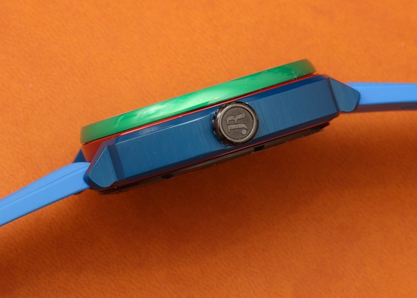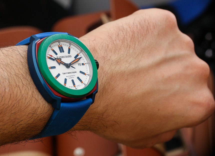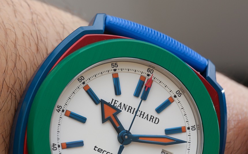 將 JeanRichard Terrascope Aluminium 手表戴在手腕上后,我的心軟了一點,尤其是我從未戴過如此讓我想起童年游戲時光的手表。那是讓理查德想要的嗎?可能不是。我想他們覺得這種原色手表做出了某種藝術表達,講浪漫語言的歐洲人可以接受。也許有一些運動隊的顏色與這個 RGB 調色板完美匹配。毫無疑問,決定生產這款手表的背后有一些“成熟”的想法。