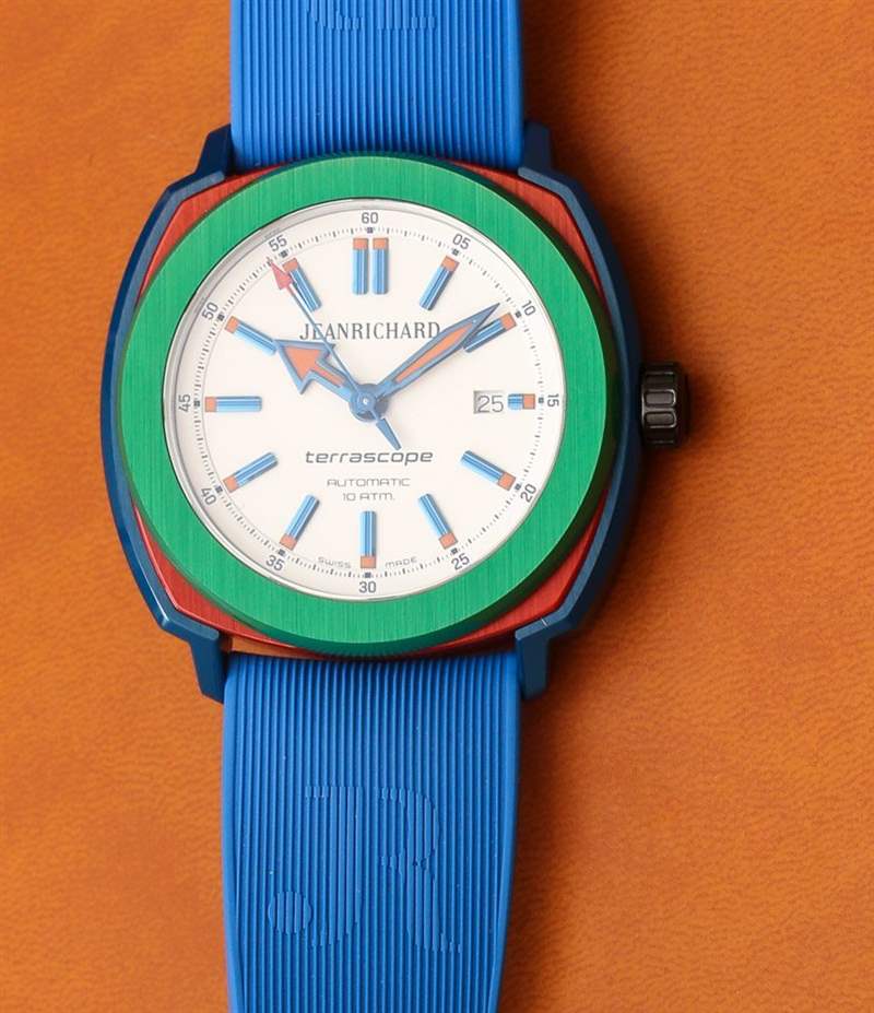JeanRichard 對 Terrascope Aluminium 所做的是采用 Terrascope 運動手表的核心設計,并提供一系列鮮艷的顏色。由于將鋼材涂成藍色、紅色和綠色很難或沒有吸引力,因此讓理查德選擇了陽極氧化鋁。因此,Terrascope 常用的鋼制外殼在此型號中由各種顏色的鋁片組成。廣告留言廣告信息結束