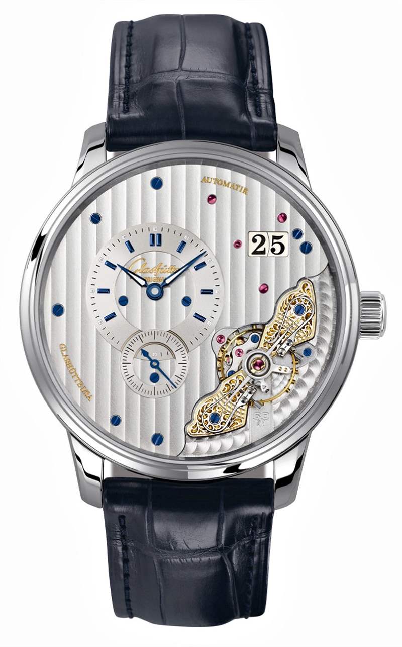 這是一款 42 毫米寬的“全尺寸”格拉蘇蒂原創(chuàng)“Pano”手表,對(duì)于某些型號(hào),它已縮小到 40 毫米寬,但我更喜歡 42 毫米寬的表殼。該機(jī)芯具有 42 小時(shí)的動(dòng)力儲(chǔ)存,包括一個(gè)偏心的時(shí)間和秒顯示,以及一個(gè)“全景日期”顯示,這就是 Glashutte Original 對(duì)其大日期窗口的稱(chēng)呼。之前的 PanoInverse 手表將這個(gè)空間用作動(dòng)力儲(chǔ)存指示器。非常感謝包含日期窗口,但有些東西讓我覺(jué)得從表盤(pán)到窗口的過(guò)渡有點(diǎn)粗糙——好像某種類(lèi)型的窗口或斜邊可能很好。