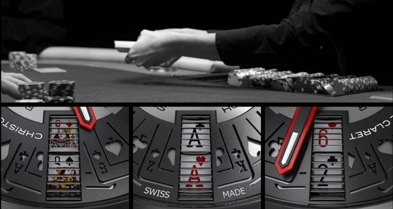 雖然 Blackjack 21 手表在表盤下方使用一系列圓盤來顯示所有紙牌組合,但考慮到顯示所需的組合和紙牌數量增加,Poker 可能需要稍微復雜一些的系統。預覽圖像不僅暗示了我們在游戲手表系列中已經習以為常的相似美學風格(包括我喜歡的那些鑲有紅寶石的指針),而且看起來像旋轉百葉窗式顯示器,每個顯示器可以顯示三個圖像控制板。