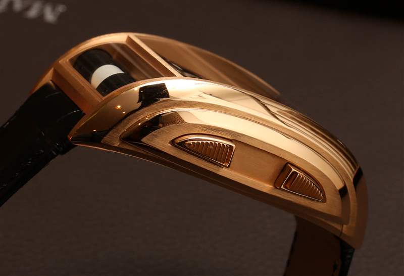 其中四個推桿具有特殊的安全桿。基本上,您需要在推動器接合之前用手指滑動小杠桿。這是一些流暢的動作,效果很好。為什么需要它們?外殼背面的小標簽貼在每個推桿位置附近。它們實際上是讓您知道推動器做什么的說明。當我在首次亮相時討論第一章時,我提到我非常喜歡這個功能。100 美元的卡西歐有其按鈕標簽,但大多數 100,000 美元的手表沒有。我從來不喜歡這樣,并且覺得考慮到價格,更多的鐘表需要更加用戶友好。因此,當耗資將近 50 萬美元的 Maitres du Temps 第一章將其作為一個特色出現時……我很激動。但它仍然讓我生氣,你需要為此花費 50 萬。
