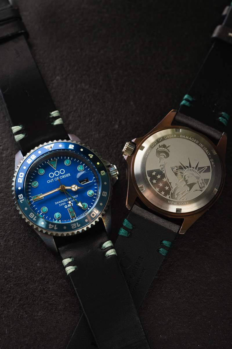 兩款 Out of Order Swiss GMT New York Limited Edition 均搭配植鞣復(fù)古皮革表帶,采用顏色匹配的縫線和標(biāo)志性的不銹鋼做舊表扣。開箱即用的表帶非常柔軟,與手表的老化特性相得益彰。對(duì)于那些不喜歡皮革表帶的人,還有(做舊的)鋼蠔式表鏈和其他多種表帶可供選擇。
