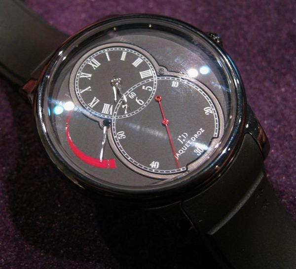 腕表內部搭載自制雅克德羅(Jaquet Droz)4063D自動上鏈機械機芯,配備雙發條盒,動力儲存為68。透過透明表背窗口可以看到機芯,擺陀實際上是以22K金完成的。手表防水30米,這就足夠了,但不要隨之而去。橡膠表帶紋理精美,部署為鋼(PVD 涂層),而非陶瓷。最重要的是,這款手表的尺寸主要為44毫米寬。我認為這是一款好看的時計,但它不會便宜。數字大約$ 10k – $ 15零售。
