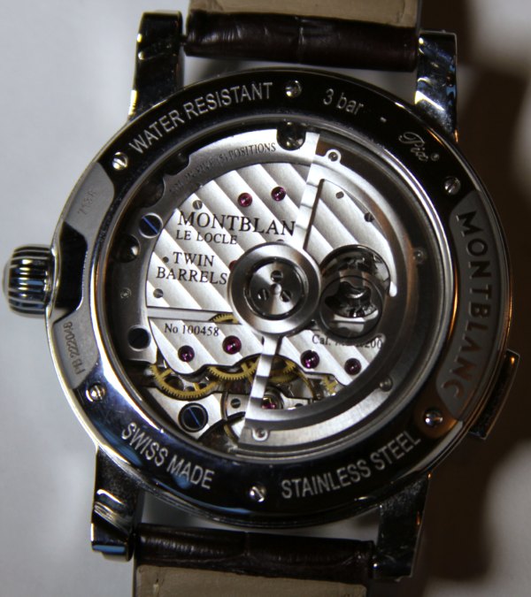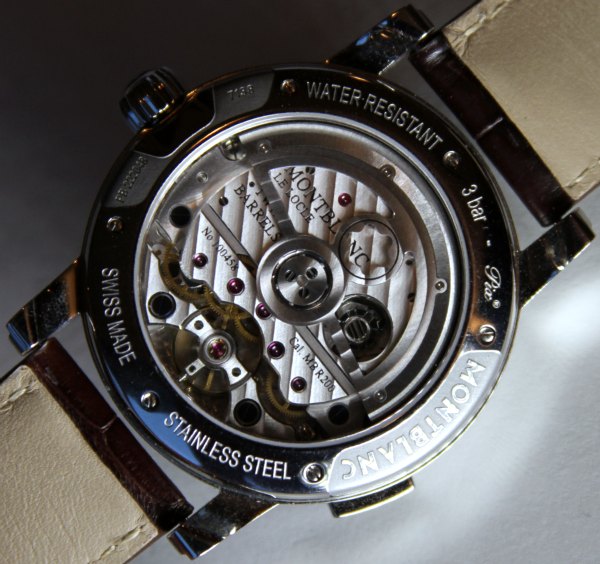 讓我們再次參觀R200機芯。它是R100的自動版本,具有一些附加功能(如上所述)。您可以看到擺陀放置在機芯上方,萬寶龍星形小孔設計用于穿過導柱輪開啟窗口。機芯有兩個發條盒,動力儲存達72小時。機芯運行速度為28,800bmp,可以調整得非常精確。我看到制表廠的機芯被調整為每天在不到一秒鐘的偏差內運行。我喜歡這場運動將現代技術和傳統主義結合起來。就像我說的,它使用自由加重的擺輪游絲和導柱輪,在組裝和制造過程中享受高度復雜的機械的幫助。