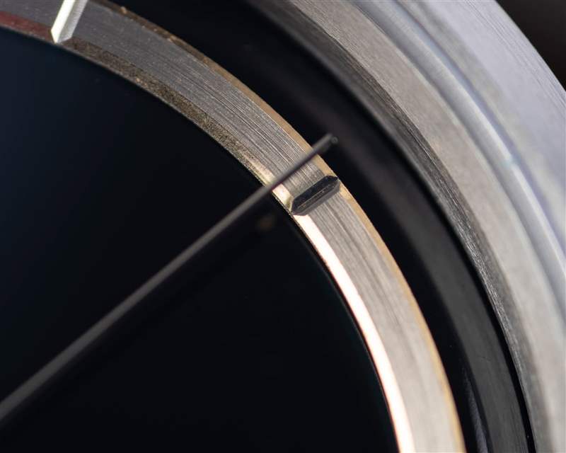 方尖碑手機經過高度拋光和倒角處理,使其具有 S1 所缺乏的深度,但在某些角度,它可能會在黑色的襯托下消失。如果沒有任何流明,它在弱光下就沒有機會。(我仍然會選擇沒有夜光的手表,而不是像 S1 這樣夜光較差的手表。)但整個手表最顯著的美學變化是鋼制小時環,它具有拉絲表面和用于標記小時的凹口,喬治·加利 (Giorgio Galli) 和型號名稱位于六位,位于表盤上“瑞士制造”的上方。它具有金色光澤,盡管該品牌在任何地方都沒有這樣描述它,所以我不能說它上面是否有涂層。
