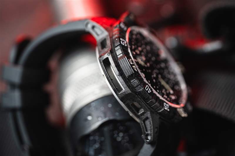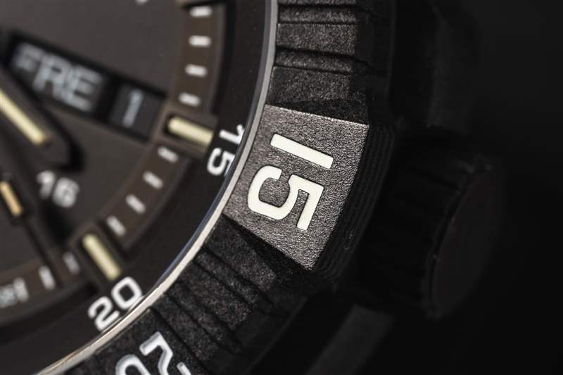 碳纖維增強聚合物外殼在行動中表現出令人印象深刻的彈性。手表戴在我手腕上時所承受的一些沖擊與我多年來在緊急服務中佩戴的其他手表上的那些導致表圈脫落、表鏈彎曲和水晶破碎的沖擊類似。然而,這種情況在醫療環境中存在一個缺陷。中殼的裂縫和骨架是細菌和其他有機物質駐留的完美區域。幸運的是,這款手表并不是針對醫療領域,而是針對戰術行動領域,這個問題在該領域不太重要。