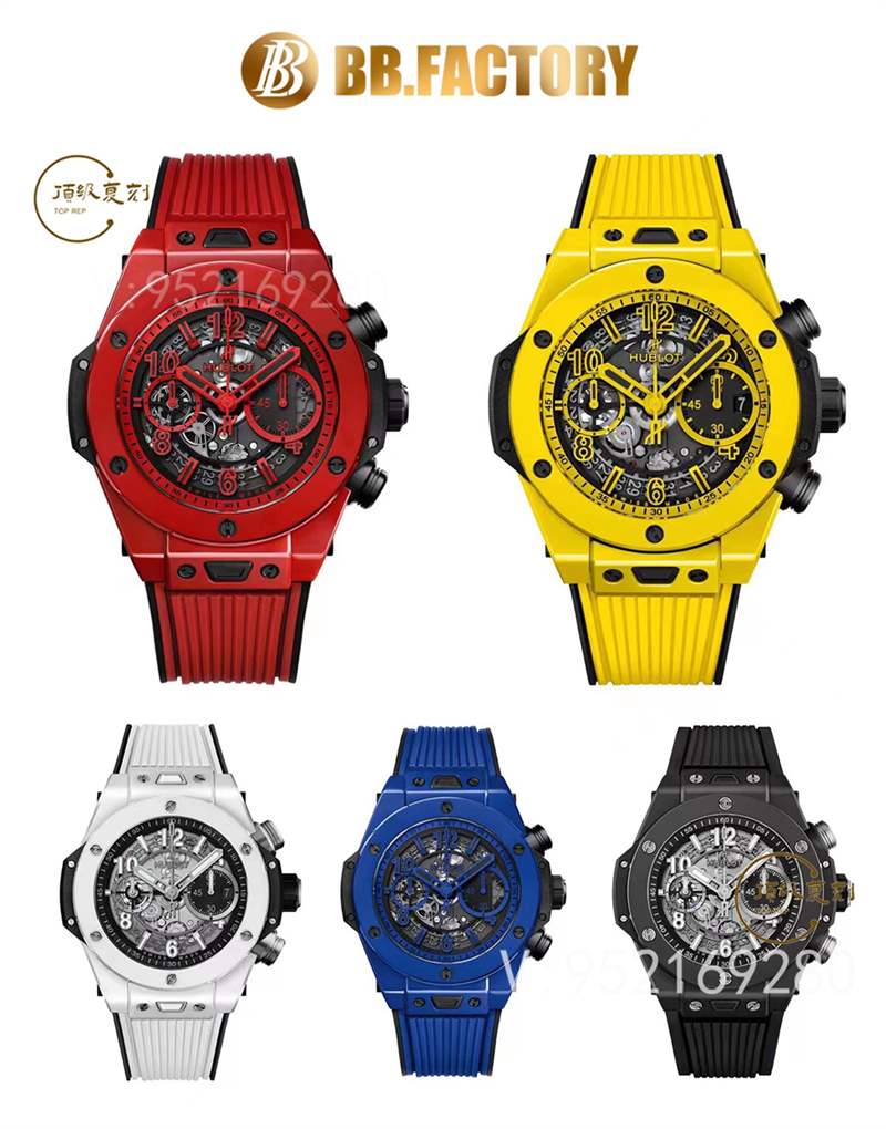 BBF廠全新突破彩色陶瓷問(wèn)世 HUBLOT 宇舶表BIG BANG Unico 大爆炸系列彩色陶瓷腕表,陶瓷工藝史無(wú)前例的重大突破,砸重金耗時(shí)四年,得以突破傳統(tǒng)的陶瓷材料。全新彩色陶瓷采用精湛的技術(shù),將高壓力和高熱相融合,無(wú)需燒制顏料就能鍛造陶瓷。這一全新的陶瓷材質(zhì)擁有高密度的特性,在此之前,行業(yè)尚未在陶瓷材質(zhì)的工藝技術(shù)和美學(xué)方面獲得如此突破。BBF對(duì)每一道工序均精益求精,精心打造該特殊陶瓷表殼的每一個(gè)部件。BBF為掌握此項(xiàng)技術(shù)歷經(jīng)四年時(shí)間潛心研發(fā),不遺余力地在對(duì)材料的探索路上砥礪前行。目前這項(xiàng)發(fā)明的技術(shù) 為BBF所獨(dú)有 標(biāo)配定制恒寶專屬UNICO HUB 1280自動(dòng)飛返計(jì)時(shí)機(jī)芯,3字位鏤空日歷環(huán),3字盤60分鐘計(jì)時(shí),(注:市面7750機(jī)芯均只能計(jì)時(shí)30分鐘)8字位水平離合、9字位小秒輪、藍(lán)寶石水晶表鏡、橡膠表帶搭配陶瓷折疊表扣,七彩紋指針質(zhì)感無(wú)可挑剔 45mm 全部功能100%完美實(shí)現(xiàn),天花板級(jí)別,歡迎玩家品鑒(BBF出品 必屬精品)